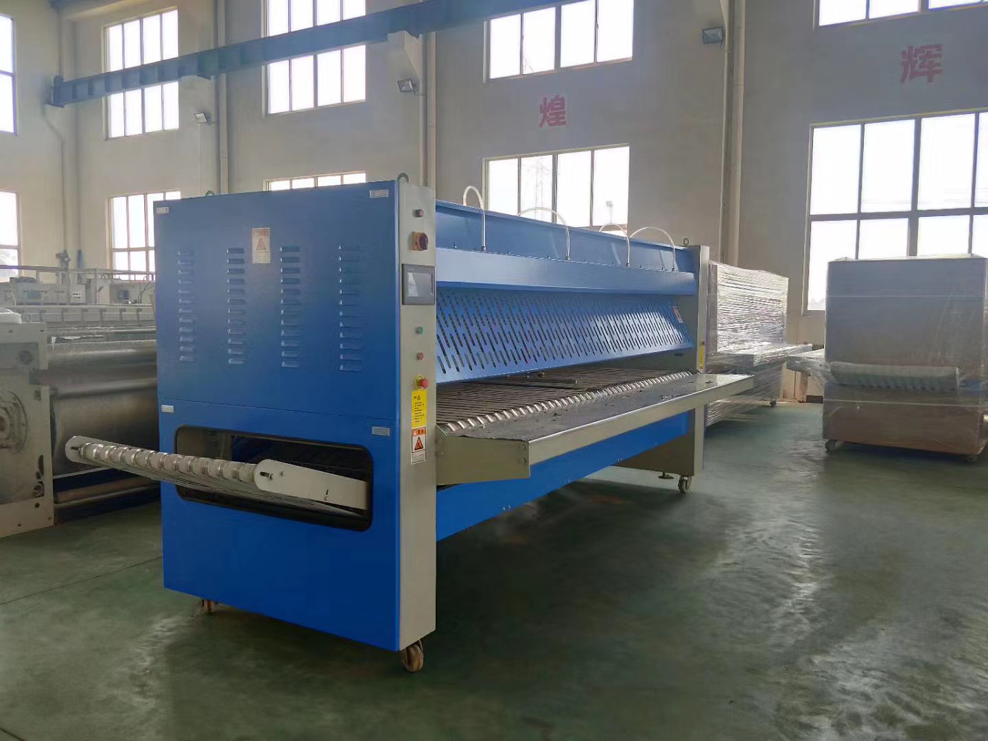 折叠机一款洗涤设备辅助机械产品,控制布料传送系统的速度和定位,测定布料长度并计算折叠长度,通过气流的喷射和折刀来完成水平折叠和交叉折叠。